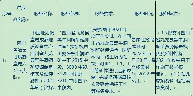 供应商名称:四川省冶金地质勘查局六〇六大队