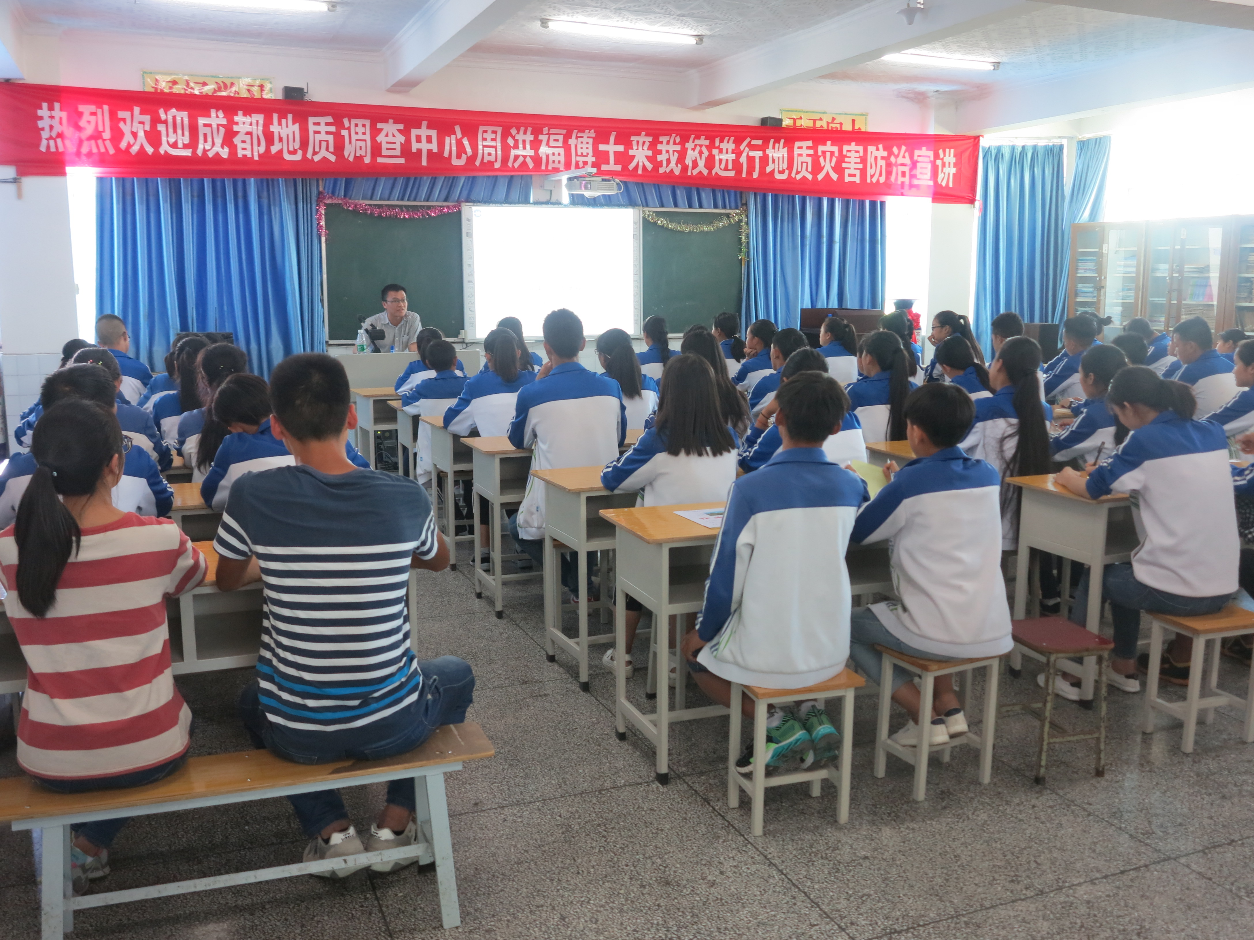 中国地质调查局成都地质调查中心围绕安宁河断裂带进行工程地质和地质灾害综合调查期间,“四川西昌等城镇和金沙江下游水电开发区工程地质调查”项目组积极与凉山州地质环境监测站、西昌市礼州中学进行对接,多次通过科普讲座方式对当地中学师生、老百姓进行有关地质灾害的知识培训。培训内容包括地质灾害的基本概念、特征、危害以及西昌市地质灾害发育分布特征以及简单实用的地质灾害防治措施和遇到突发地质灾害时的应急避让措施。项目组还结合当地的实际情况,通过生动具体的实例,从避让地质灾害的角度,教授当地居民在山区如何选择安全的场地修建房屋,并向大家普及了我国在地质灾害防治方面的政策法规。科普过程中,项目组向当地赠送400余册地质灾害宣传手册和宣传挂图。