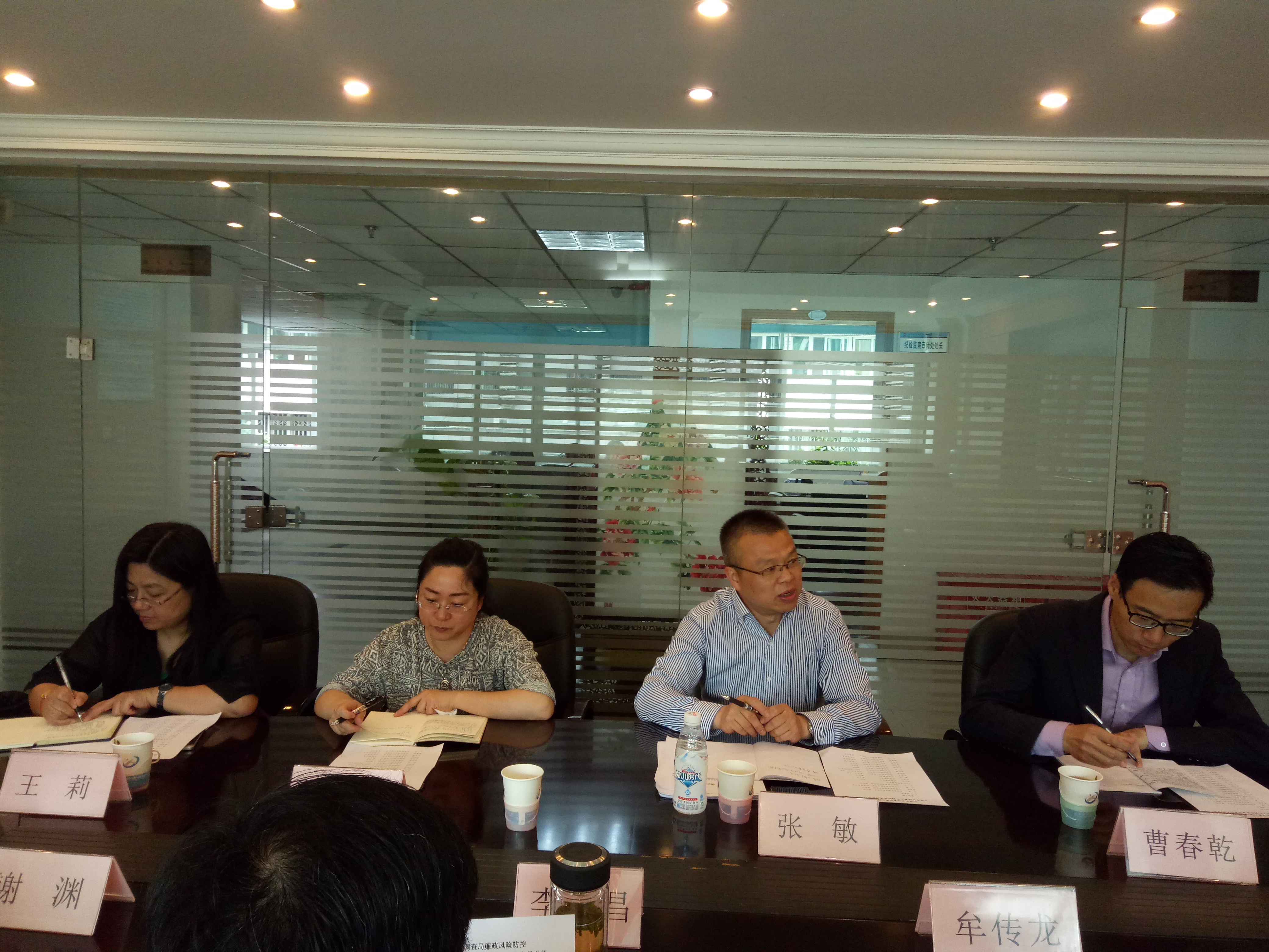 2018年4月26日,局廉政风险防控专项审计调研组张敏副主任一行4人,莅临中国地质调查局成都地质调查中心开展“廉政风险防控专项审计检查”专题调研。中心主任李文昌、副主任谢渊、相关管理部门、部分业务部门、二级项目、子项目负责人和监察审计处全体人员参加座谈。