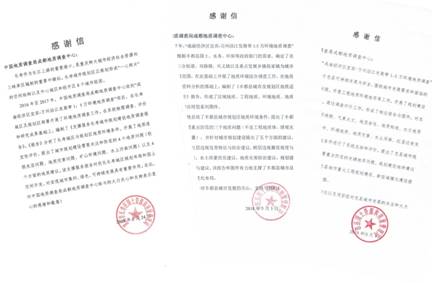 成都地调中心及时移交地质调查成果报告和图件、主动服务城市规划建设发展的做法得到了地方政府的高度评价和衷心感谢。