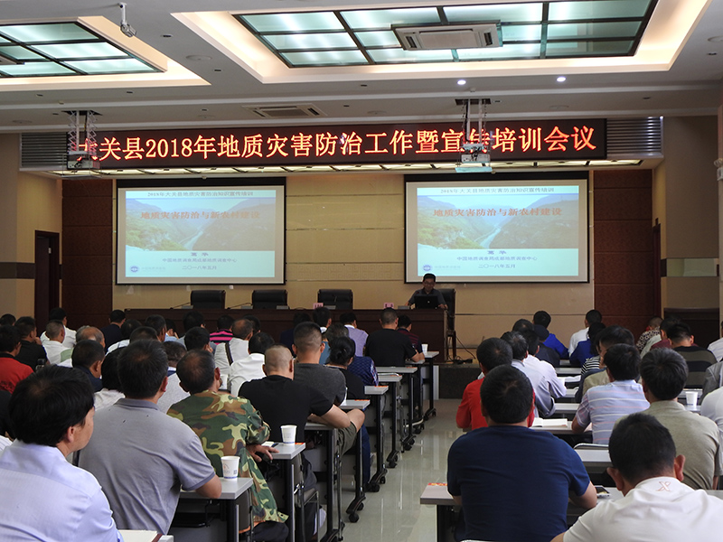 近日,中国地质调查局成都地质调查中心 “乌蒙山区北部城镇地质灾害调查”项目和云南省大关县国土资源局联合举办了2018年地质灾害防治工作暨宣传培训会。各乡镇的分管领导、县委县政府各部门负责同志、群测群防地质灾害隐患点监测人员及各中学校长共计248人参加会议。