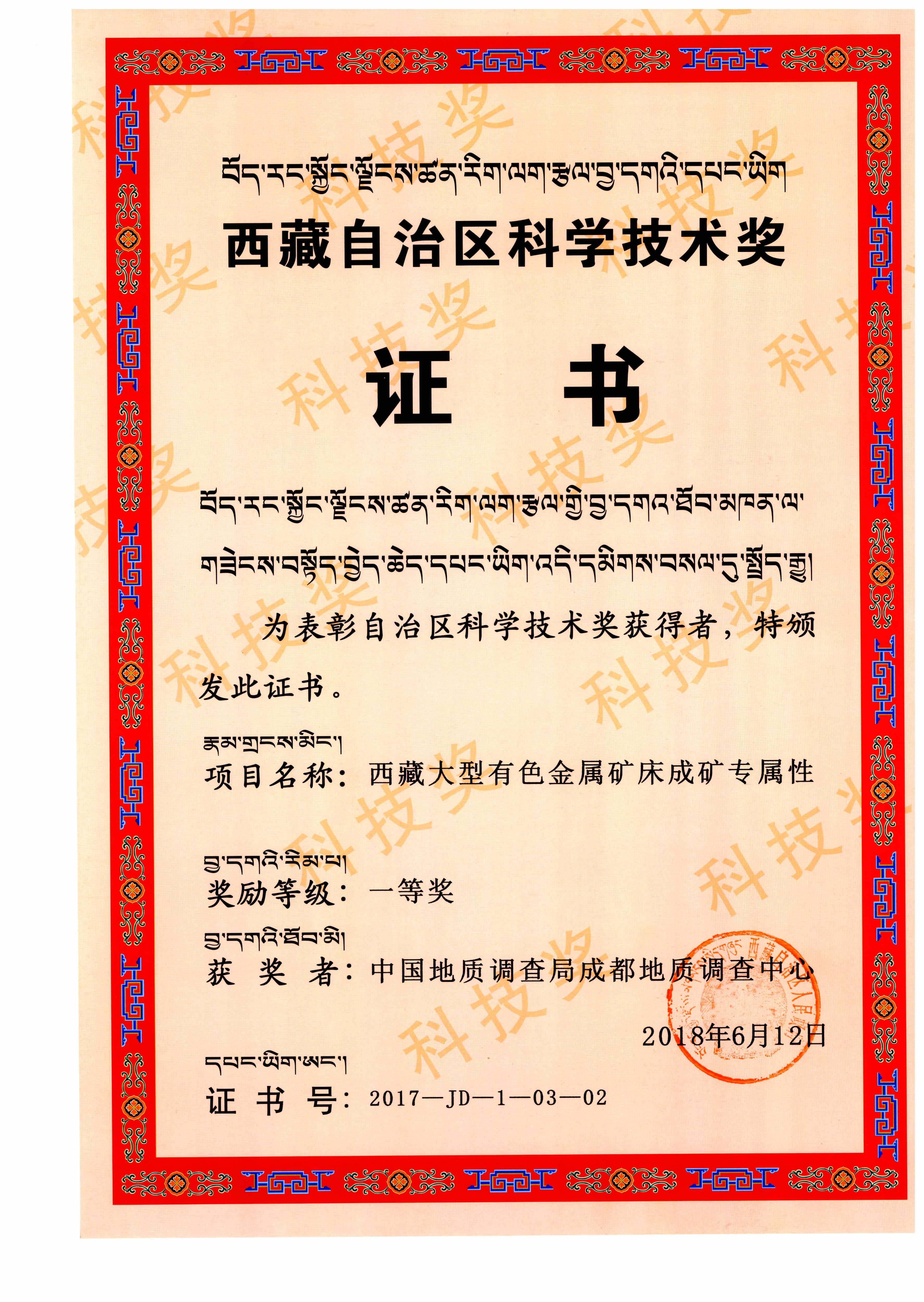 近日,“西藏大型有色金属矿床成矿专属性”成果荣获西藏自治区科学技术奖一等奖。该成果经费由自然资源部中国地质调查局支撑,西藏自治区地质调查院牵头申报,中国地质调查局成都地质调查中心等4家单位于2014年共同完成。项目工作区域位于西藏中东部,平均海拔五千米以上。