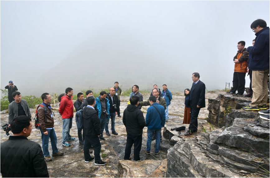 与会专家于罗平生物群1号化石采场现场交流讨论