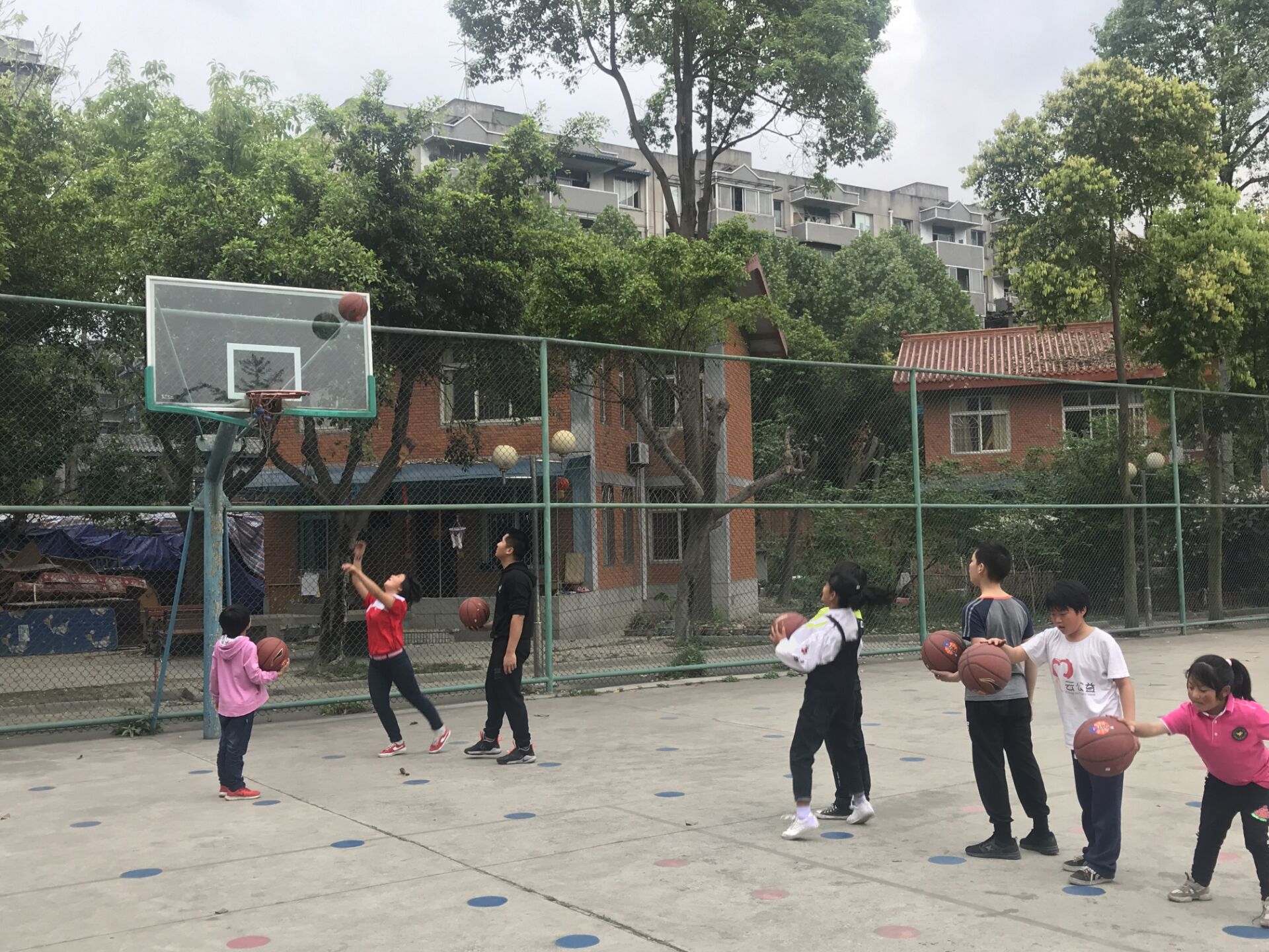 十二三个八九岁的孩子围成一圈,仔细聆听志愿者们讲解篮球投篮步伐,进球技巧。看到志愿者们轻快的步伐和高质量的进球,孩子们激动万分,跃跃欲试。在球场上,孩子们一路向前、挥洒汗水,当球投进那一刻,每个人脸上都挂满了喜悦的笑容。