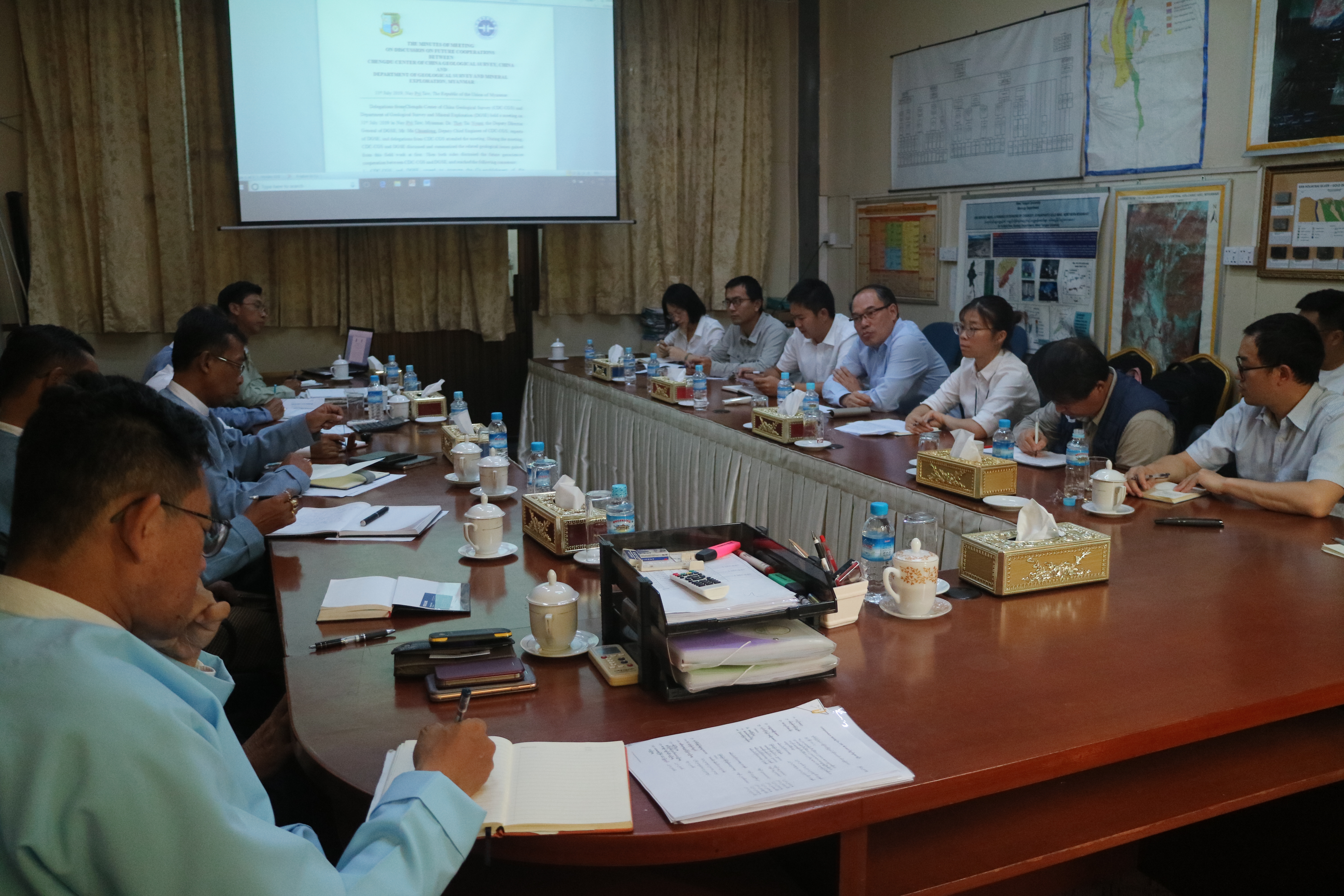 经过本次联合调查,中缅联合工作组查明了缅甸蒙育瓦铜矿、达贡山镍矿、茂奇钨锡矿、土瓦赫敏依钨锡矿等典型矿床的主要控矿因素,确定了找矿方向,缅甸地质调查与矿产勘查局对本次调查成果给予高度认可。DGSE常务副局长Thet Tin Nyunt先生还就下一步合作意向与中国-东盟地学合作中心进行了热烈的讨论,并在“共同推进中国-东盟地学合作中心建设、合作开展地质地球化学调查、跨境联合编图、共同推进实施‘东南亚特提斯构造演化成矿研究’科学计划、共建地质实验室、联合培养研究生” 等方面达成合作共识。