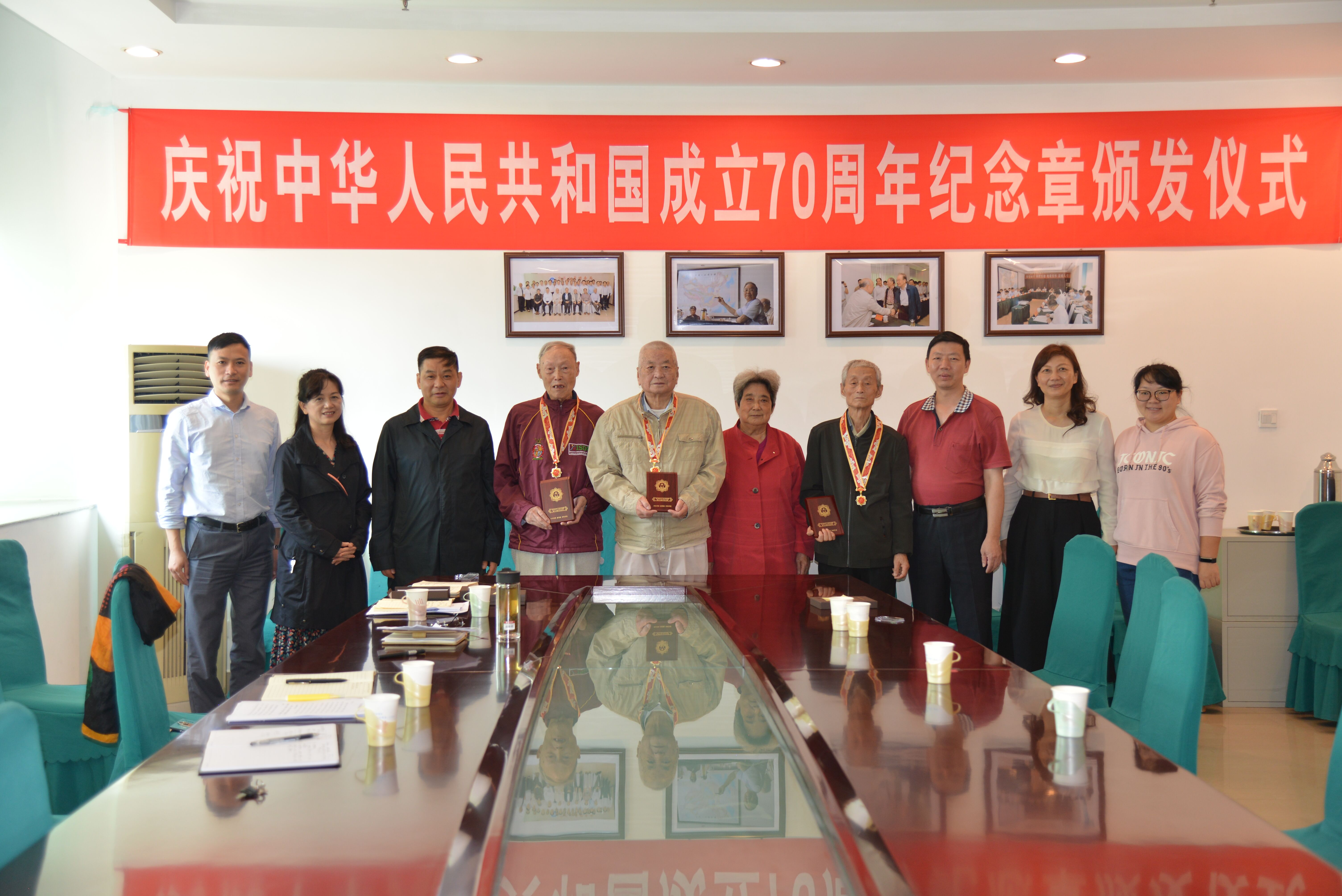 9月25日,成都地调中心为10位同志举行了“庆祝中华人民共和国成立70周年”纪念章颁发仪式,党委书记胡时友出席并为离休老同志佩戴纪念章,感谢10位同志为新中国成立和地质事业发展作出重要贡献。