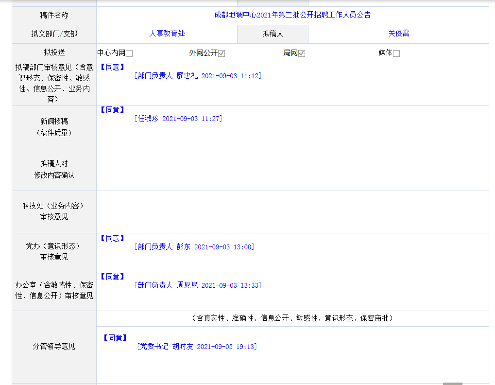 对报名人员材料进行资格审查,资格审核通过人员将在中国地质调查局成都地质调查中心网站公示,并以邮件或电话形式通知通过资格审查人员参加考试考核的时间、地点等相关事宜。