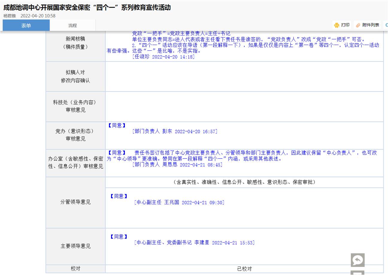 为提升职工国家安全意识、法治意识及保密技能,共筑国家安全铜墙铁壁,近日,中国地质调查局成都地质调查中心多部门联动组织开展了国家安全保密“四个一”系列教育宣传活动。