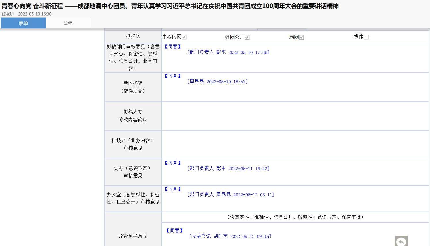 5月10日上午,中国地质调查局成都地质调查中心组织团员、青年职工集中收看了庆祝中国共青团成立100周年大会直播,认真聆听了习近平总书记在大会上发表的重要讲话,有条件的野外项目组青年职工在驻地一同收看了大会直播。