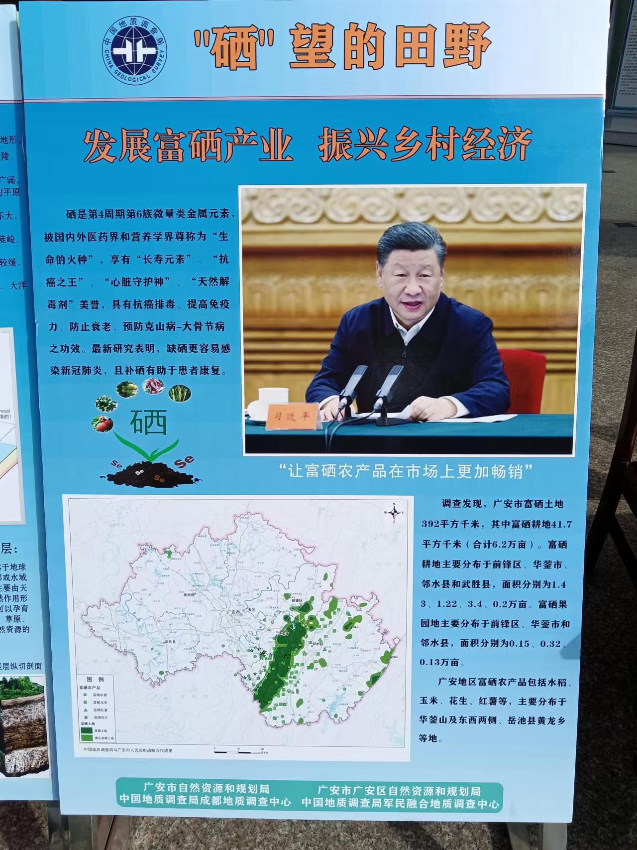 成渝双城经济圈城市地质安全体检与风险评估项目组科研人员向当地群众展示了项目相关成果,介绍了硒对人体健康的重要性和广安市富硒土地、富硒农产品等分布情况,以及广安市发展富硒农业产业的前景。专家紧密围绕“节约集约用地、严守耕地红线”主题,向群众宣讲了贯彻落实党中央重大决策部署的举措成效和经验做法、相关土地政策和法律法规知识,发放了相关宣传资料。