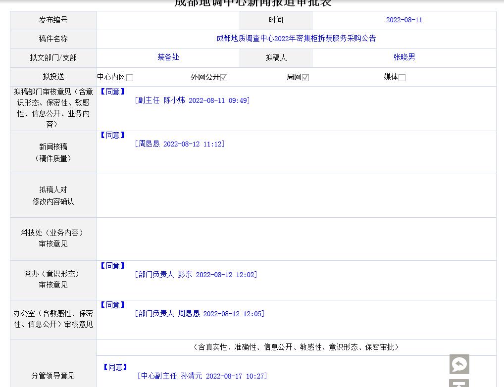 成都地质调查中心2022年密集柜拆装服务采购项目,欢迎合格报价人参加本次采购活动。