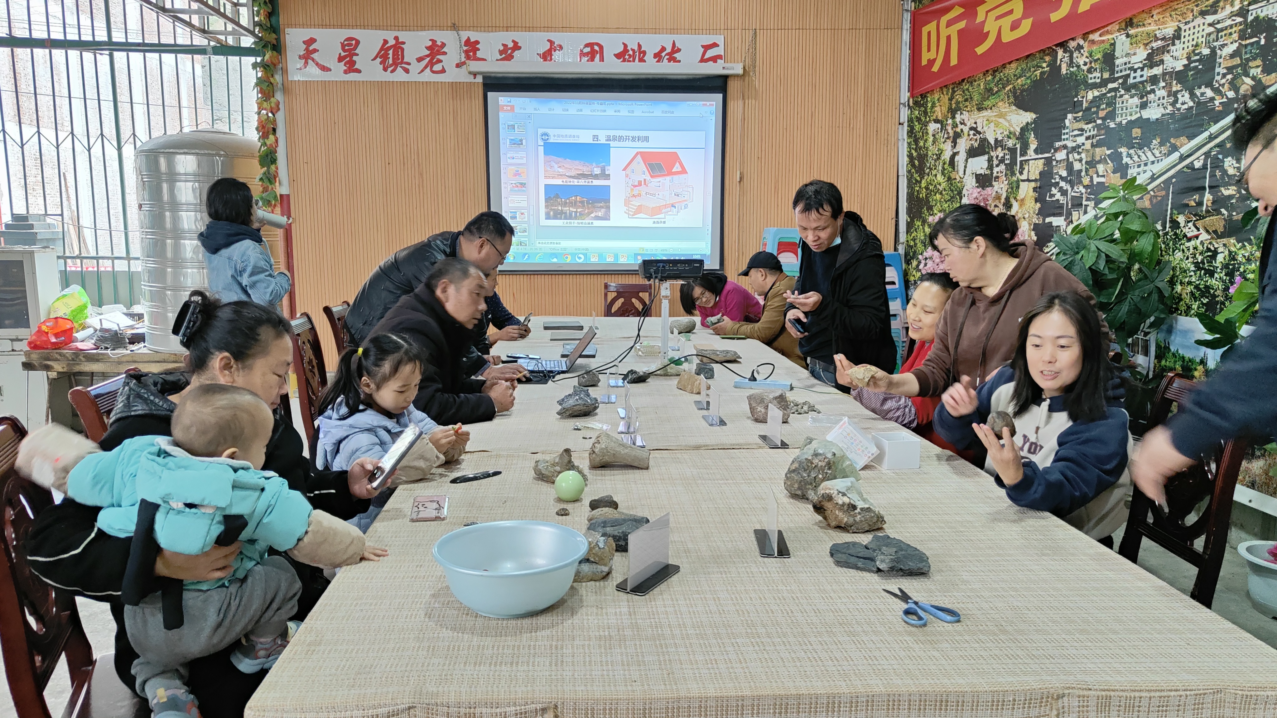 地学科普面向普通大众,介绍地球科学知识、推广技术应用、倡导科学方法、传播科学思想、弘扬科学精神的社会教育活动,是提升国民科学素养的有效途径。2022年11月15日,中国地质调查局成都地质调查中心在大关县天星镇开展了以“珍爱美丽地球、守护自然资源”为主题的科普活动,来自“西南地区铜镍锡铍等矿产地质调查”、“西南诸河澜沧江流域水文地质与水资源调查”、“长江上游水土流失区生态地质调查与综合评价”项目的王子正、岑鑫雨、张腾蛟3位科研人员走进大关县天星社区,与20多名社区居民一起开展了一次别开生面的科普宣传活动。