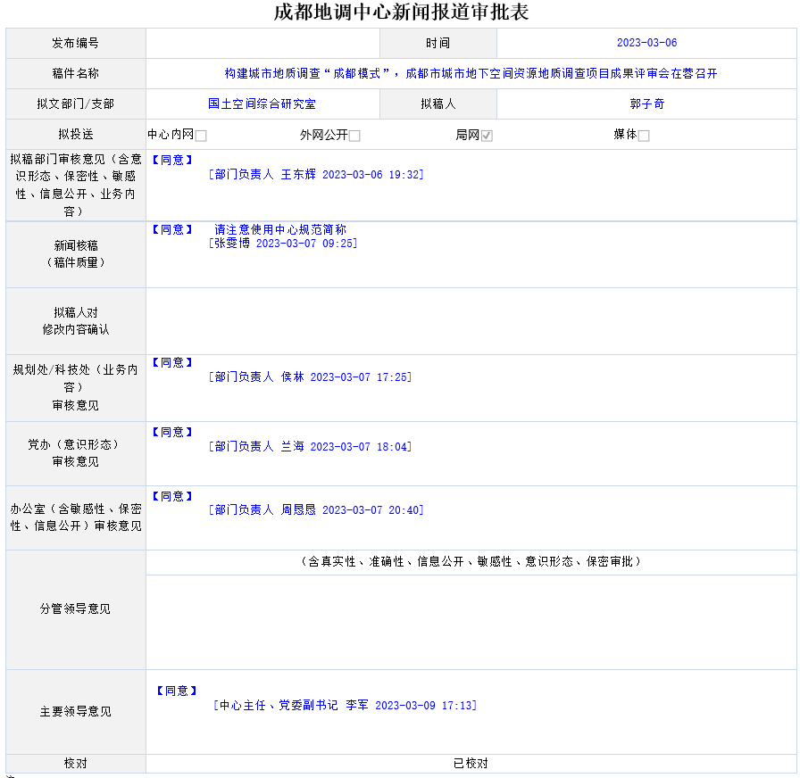 2023年3月4日,由中国地质调查局与成都市人民政府联合组织实施的“成都市城市地下空间资源地质调查”项目通过院士领衔的专家组评审。专家组评价认为项目成果总体达到国际先进水平,特大城市地下空间综合地质调查与关键建模技术达到国际领先水平。