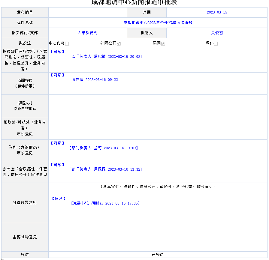 中国地质调查局成都地质调查中心2023年度公开招聘进入面试人员名单公示已结束,定于2023年3月21日举行面试考核。现将考核相关事项通知如下: