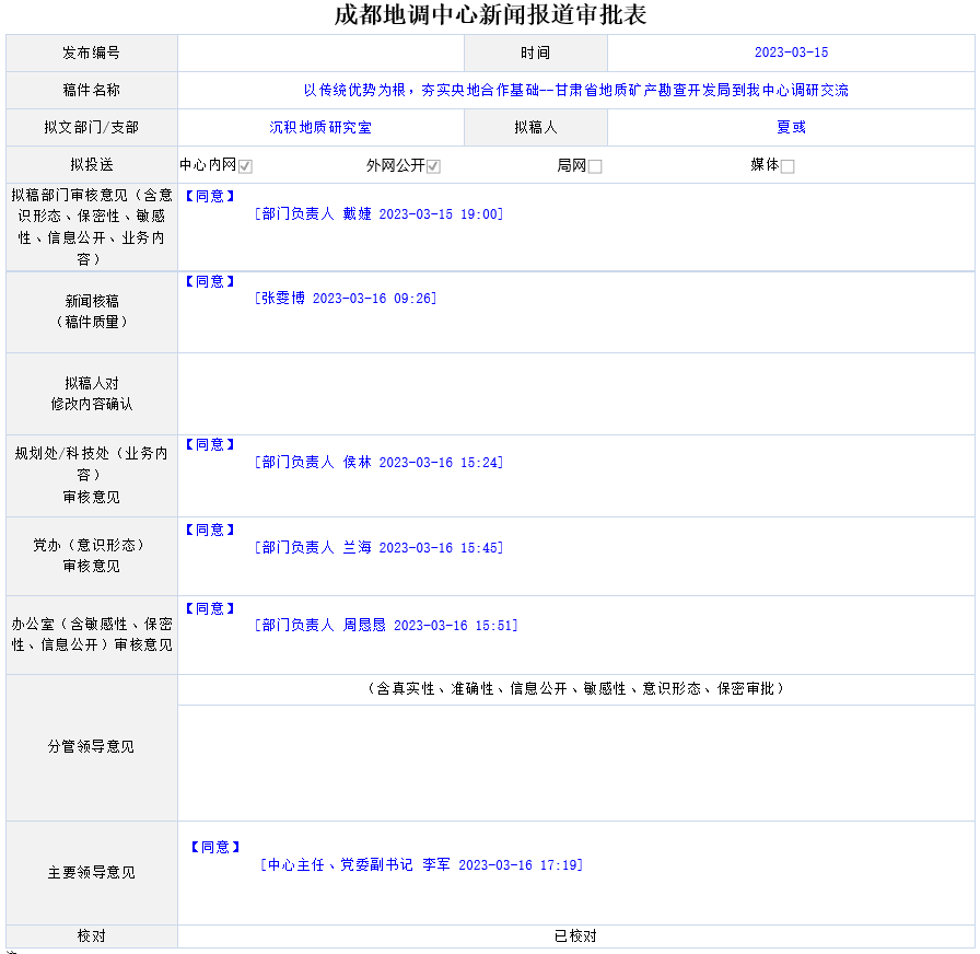赵玲房局长指出,为落实甘肃省“四强”行动,甘肃省地矿局将围绕主责主业、回归地质找矿。成都地调中心与甘肃省地矿局合作历史悠久、基础深厚,希望以钒、锰矿岩相古地理研究为契机,开启关键矿产、油气资源等更大领域的合作攻关。