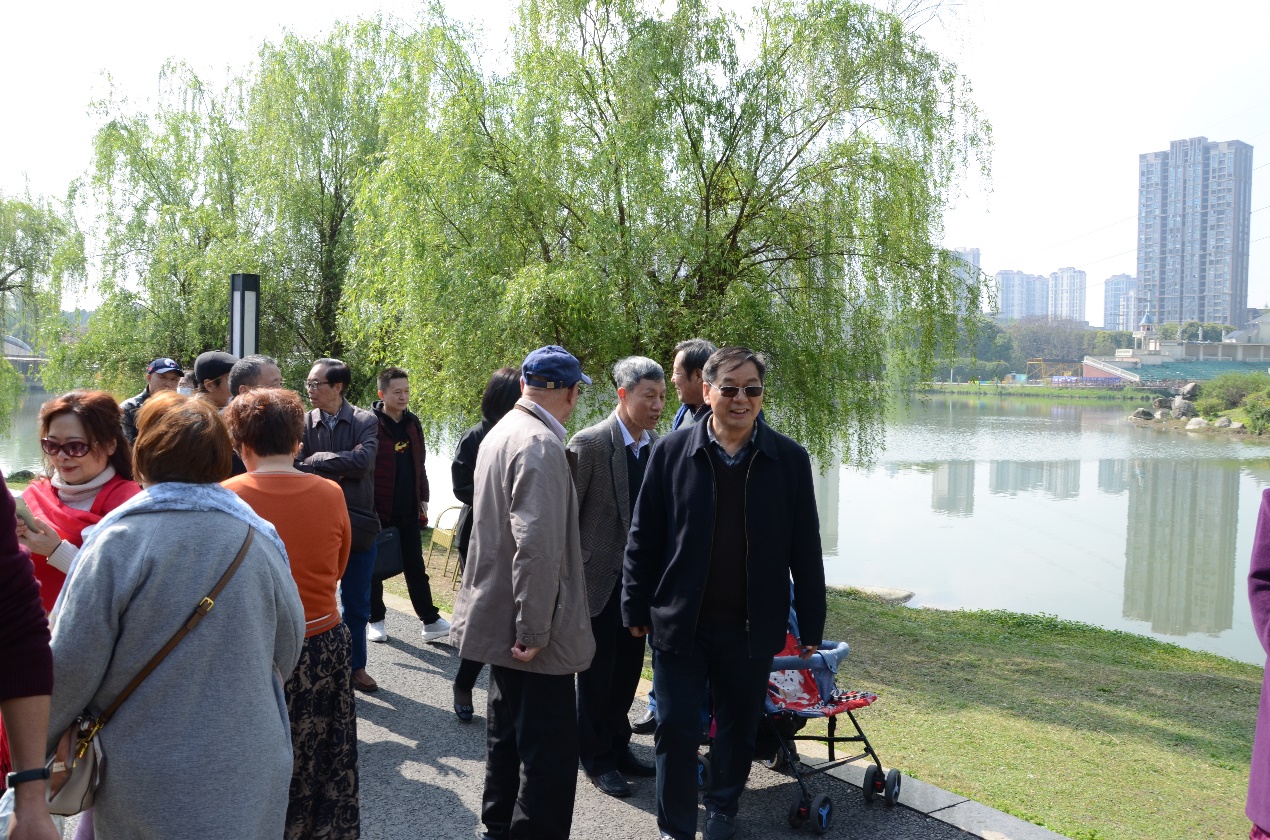 党委书记胡时友与老同志们一道游览公园