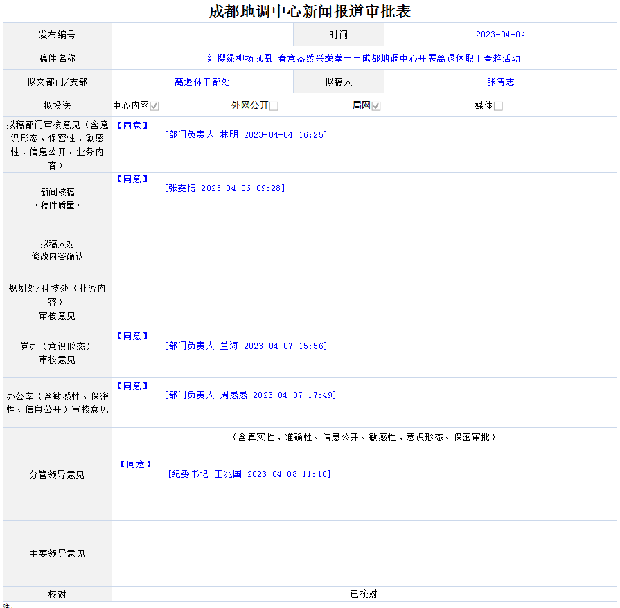 2023年3月23日,自然资源部中国地质调查局成都地质调查中心组织离退休老同志来到成都市青白江区凤凰湖城市湿地公园,开展每年一度的春游活动,中心130余名离退休老同志参加了本次活动。