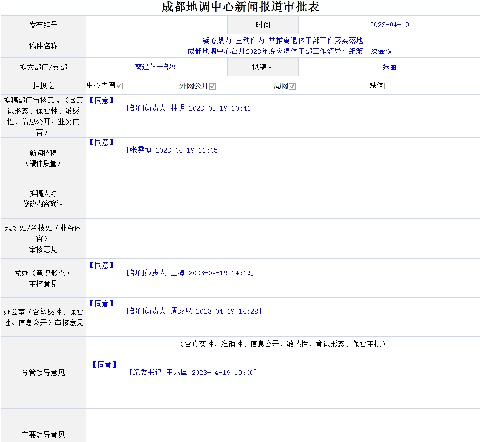 会议审议通过了中心离退休干部工作领导小组成员调整名单,听取了2022年中心离退休干部工作总结汇报,讨论了《2022年度成都地调中心离退休职工白皮书》,部署了年度主要任务和重点工作。