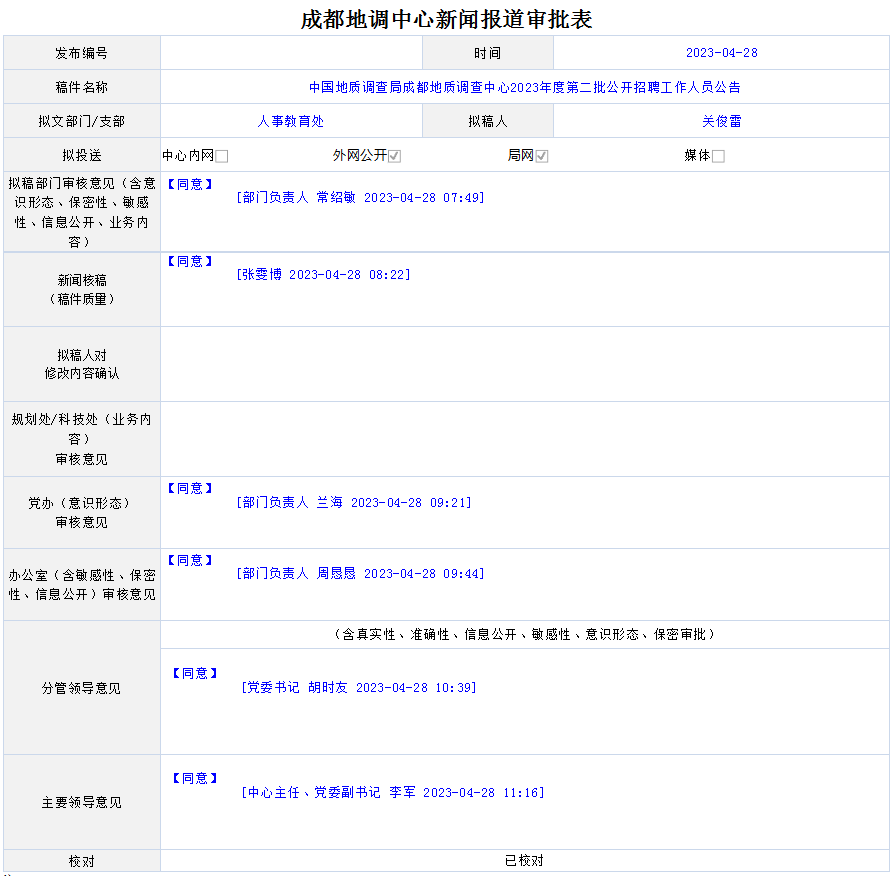 招聘岗位、人数及详细要求,见《中国地质调查局成都地质调查中心2023年度第二批公开招聘岗位信息表》(附件)。