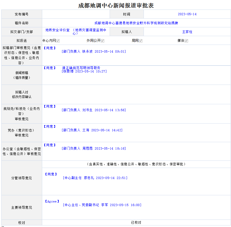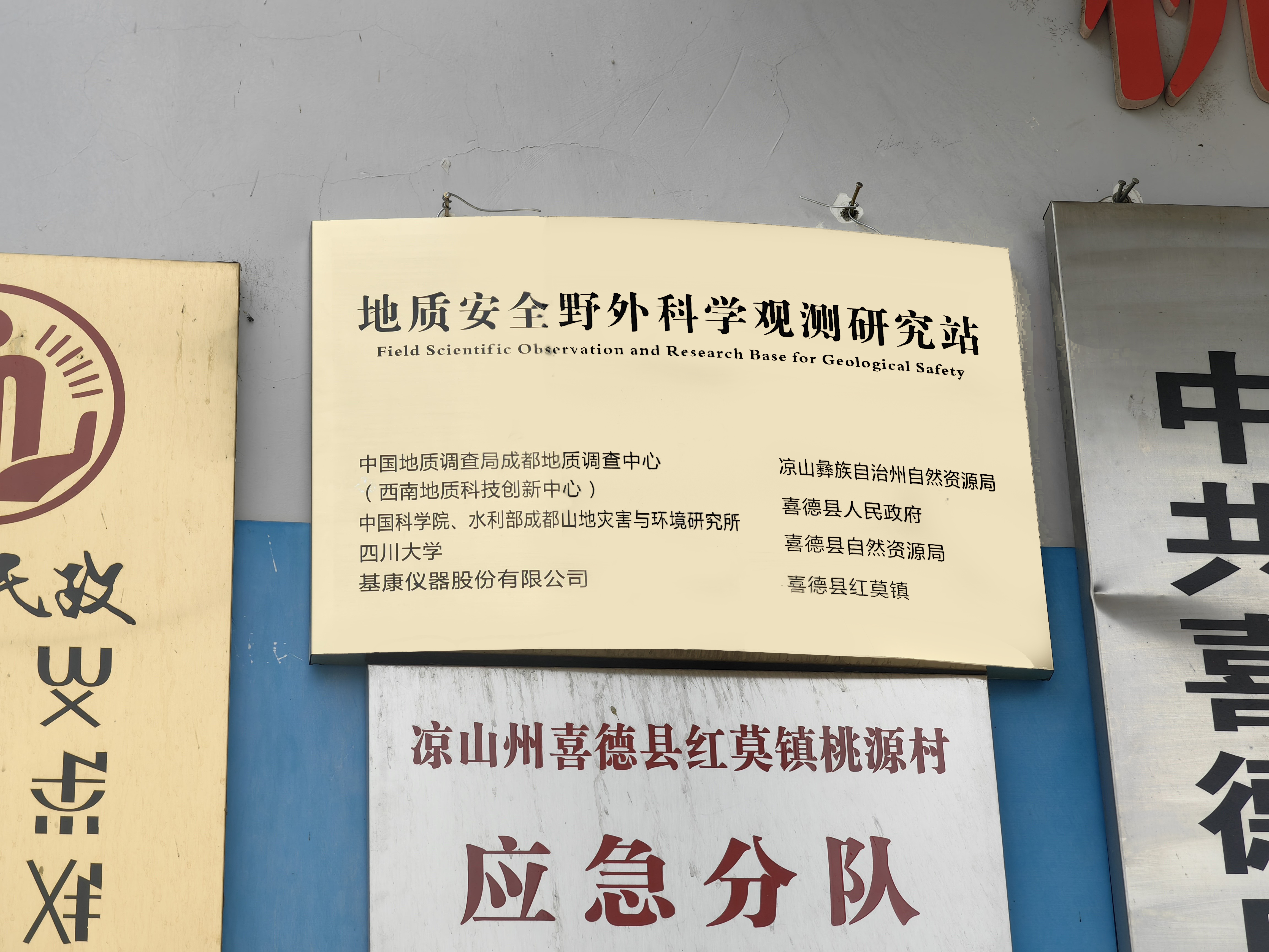 2023年5月12日,应凉山彝族自治州自然资源局邀请,成都地调中心喜德县地质安全野外科学观测研究站揭牌仪式在凉山彝族自治州喜德县红莫镇桃源村举行。成都地调中心副主任、党委委员廖忠礼、凉山州地灾指挥部副指挥长李俊、喜德县副县长阿于木果及相关单位主要负责同志出席。揭牌仪式后,就观测站基地建设所用土地类型与用地划拨、场地平整、用水用电配套及信息沟通渠道机制建立等事宜进行了研讨。会后,廖忠礼副主任赴野外,对典型滑坡灾害和已建监测设备进行现场调研,要求下一步应加强多参数监测数据分析和链式灾害成灾机理研究力度,逐步提升成都地调中心在地质安全研究领域的话语权。