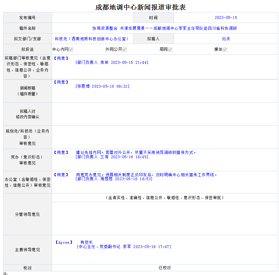 会上,成都地调中心介绍了中心60年来地质科技创新成果。四川省科协重点介绍了“天府科技云”建设与应用成效。与会人员共同研讨了加强央地合作联动,推进学术期刊建设,加强人才和项目申报等方面的事宜。