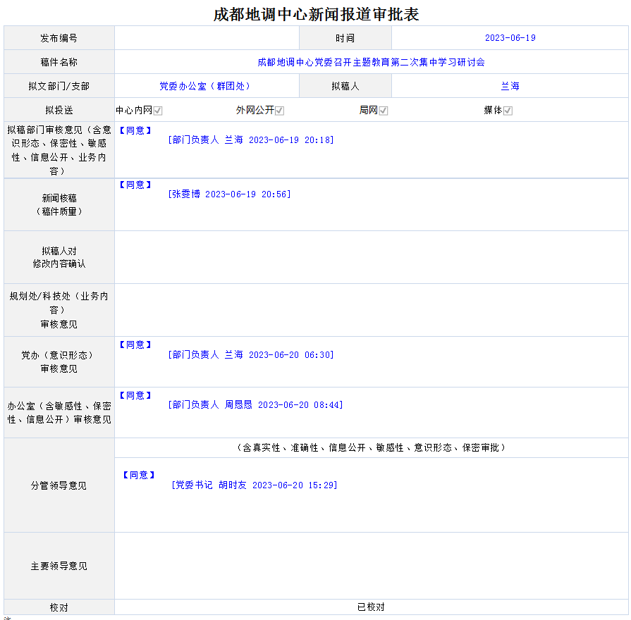 6月19日,中国地质调查局成都地质调查中心党委召开理论学习中心组(扩大)学习会议,围绕“深入学习领会习近平总书记对中国式现代化重大理论和实践问题的阐述,结合工作实际,深刻把握以中国式现代化全面推进中华民族伟大复兴的使命任务,以地质调查现代化助力中国式现代化建设”开展学习研讨。中心党委书记、副主任胡时友主持会议,并作总结讲话。中心主任、党委副书记李军作重点发言。局主题教育第四巡回指导组刘琦同志出席会议,中心在家党委委员出席会议。