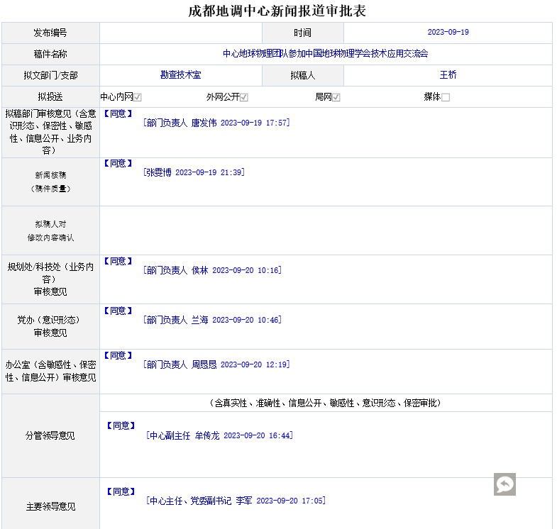 2023年9月17日—18日,“中国地球物理学会四川办事处、中国地球物理学会科技推广试点单位挂牌暨地球物理技术应用交流会”在成都成功举办,会议旨在大力推进中国地球物理科学技术的高质量发展,有效发挥地球物理在新一轮找矿突破战略行动中攻深找盲的作用,显著提升四川省地球物理学科的业务水平。中国地质调查局成都地质调查中心(西南地质科技创新中心)派出地球物理团队5人参加。