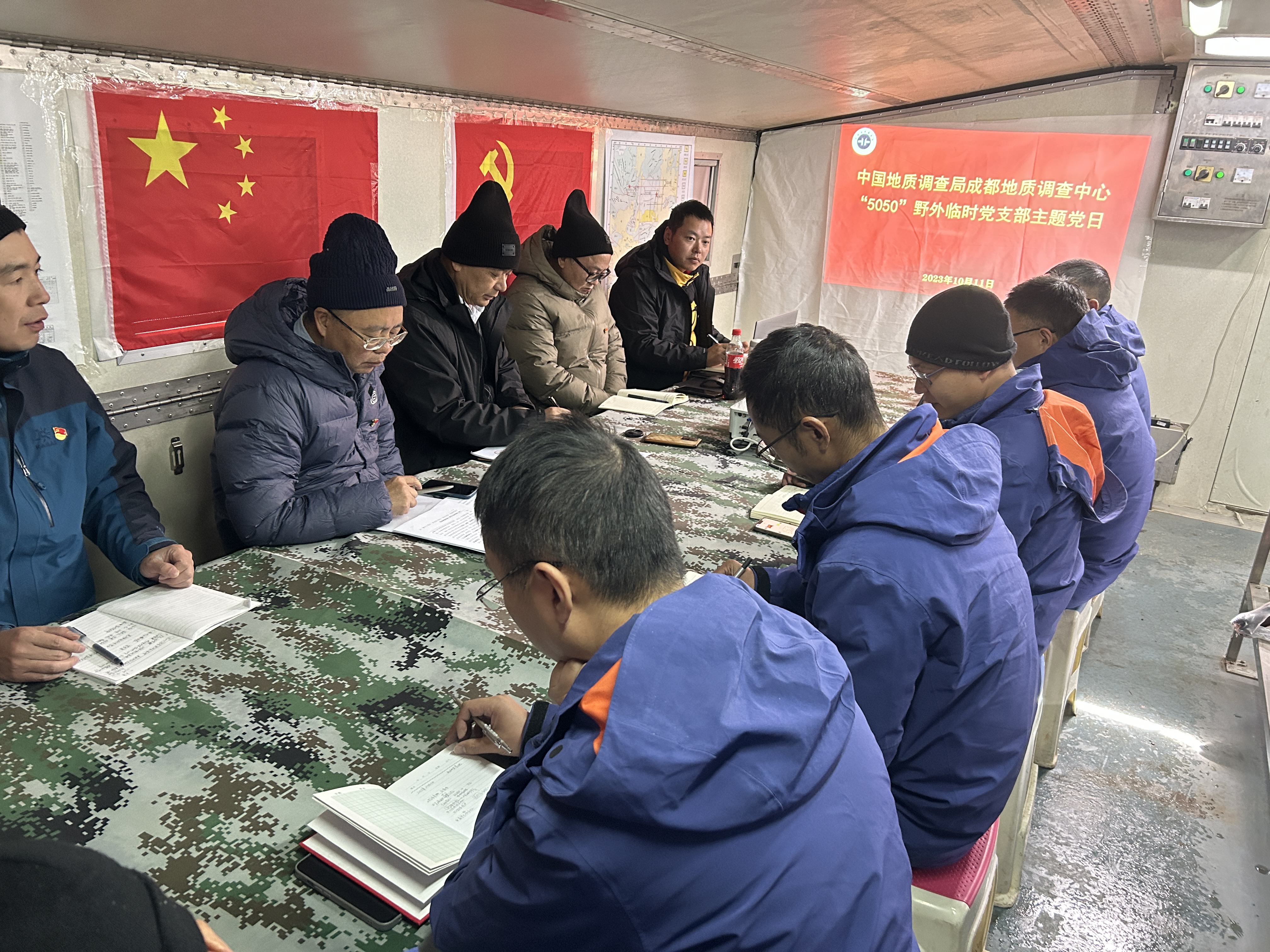 10月11日,中国地质调查局成都地质调查中心(以下简称“中心”)5050野外临时党支部在西藏自治区双湖县托拉木营地开展主题党日活动。中心党委书记、副主任胡时友出席活动并讲话。