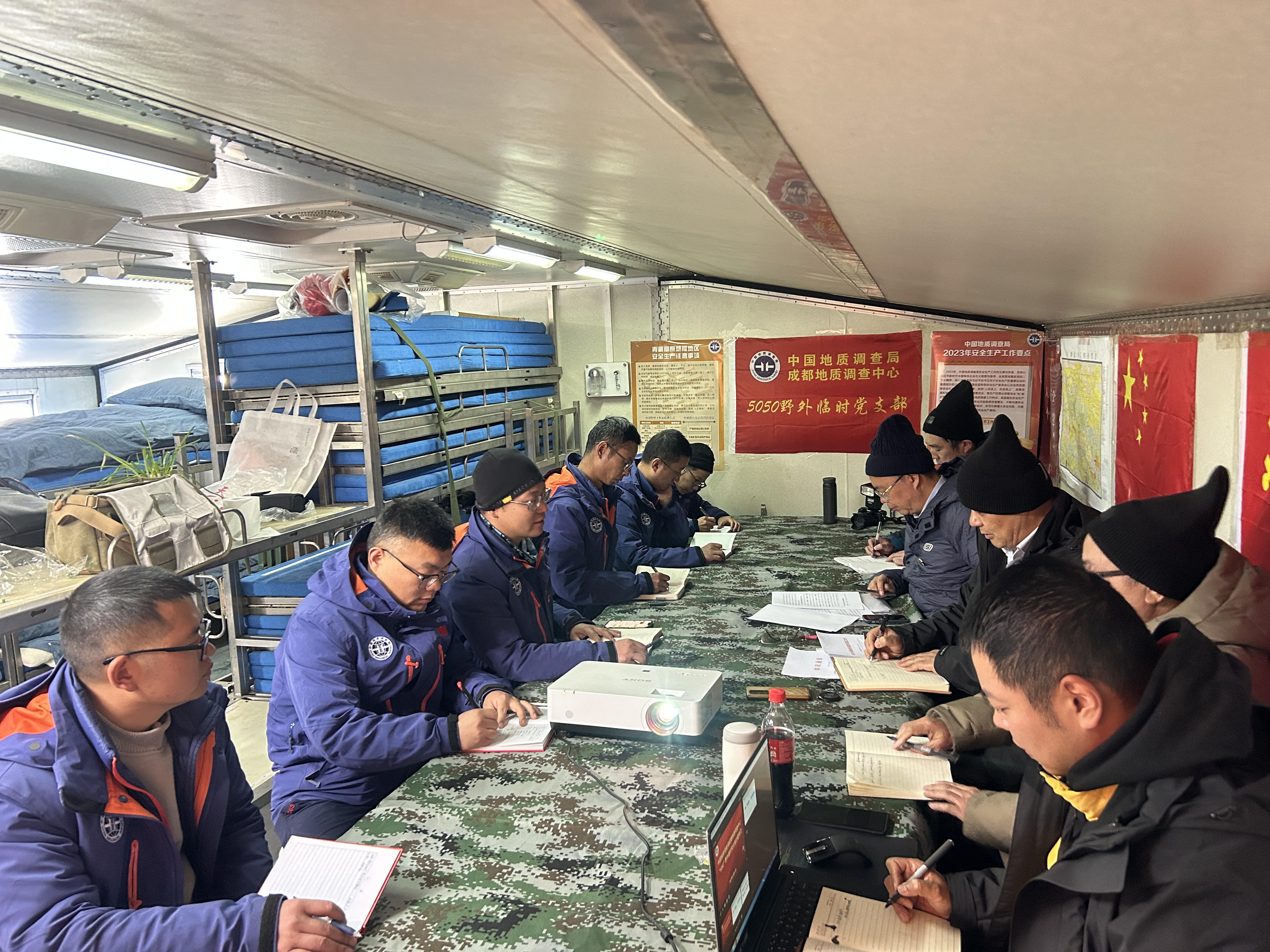 胡时友同志充分肯定了5050野外临时党支部各项工作,指出在海拔5000米以上的西藏羌塘地区开展地质工作是极其艰苦的,与会同志们作为中心第四代“青藏精神”的传承人,要以实际行动不断丰富“忠诚担当、不畏艰苦、敢于创新、勇攀高峰、团结奋斗”的“青藏精神”时代内涵。临时党支部要坚持党建引领,抓好理论学习、抓实团队建设、突出品牌支部建设,筑牢廉政建设,勠力同心推进中心地质调查工作现代化。