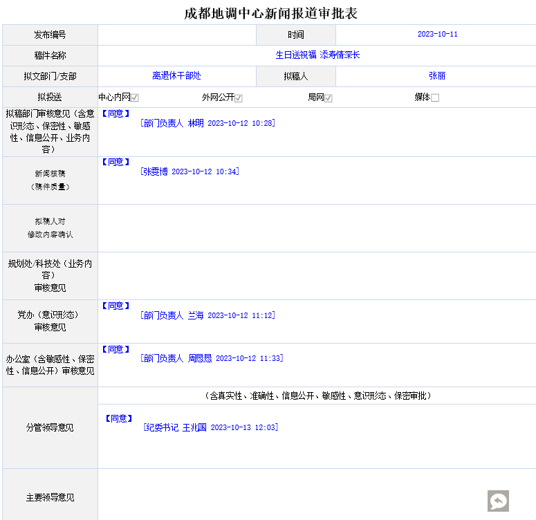 最美不过夕阳红,成都地调中心历来高度重视优秀传统文化的继承,在每位离退休职工的生日之际,都会送上一张生日蛋糕卡,增添一份甜蜜和喜悦。更是有为年满90周岁及以上的离退休老人上门祝寿的惯例。