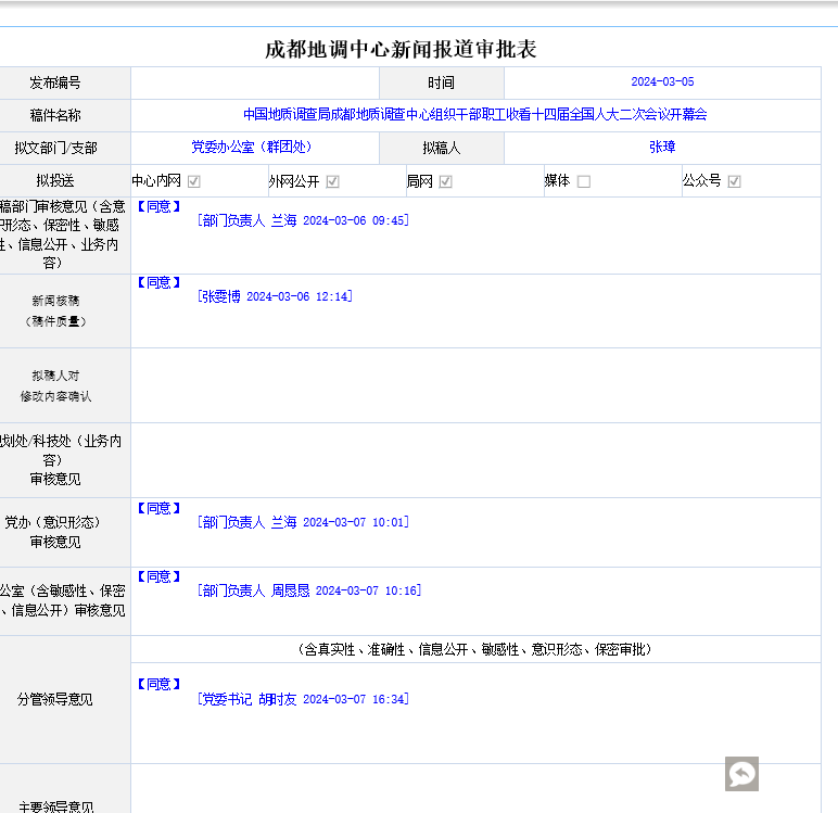 2024年3月5日上午,中国地质调查局成都地质调查中心(以下简称“中心”)组织干部职工收看十四届全国人大二次会议开幕会,中心党委委员和部分中层干部进行了集中收看,并围绕《2024年国务院政府工作报告》开展了热烈讨论。大家一致认为,此次政府工作报告内容详实、目标明确、鼓舞人心,为2024年各项工作发展指明了方向,并进一步坚定了发展奋进的信心和决心。