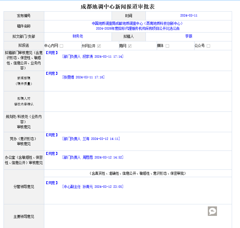 中国地质调查局成都地质调查中心(西南地质科技创新中心) 拟通过公开比选方式选择和确定2名中选人,承担“2024-2026年度招标代理服务机构采购服务”。诚邀符合资格条件的供应商参加,现将有关事宜公告如下: