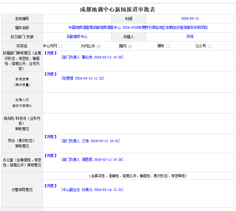 中国地质调查局成都地质调查中心 2024-2026年度野外艰险地区车辆定点租赁服务采购项目 |