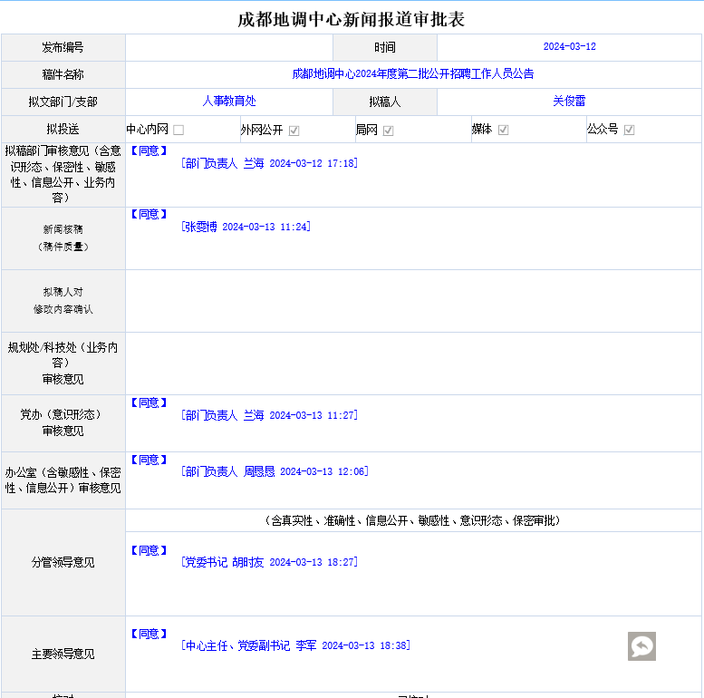 招聘岗位、人数及详细要求,见《中国地质调查局成都地质调查中心2024年度第二批公开招聘岗位信息表》(附件)。