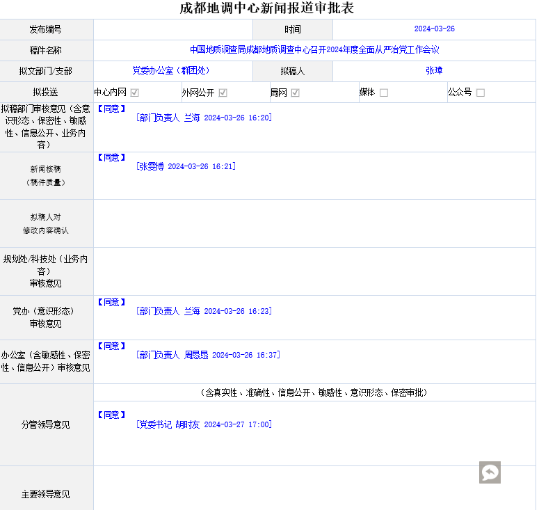 2024年3月21日上午,中国地质调查局成都地质调查中心(以下简称“中心”)召开2024年度全面从严治党工作会议。中心主任、党委副书记李军主持会议。
