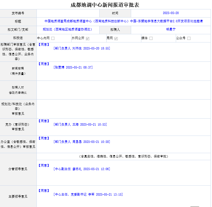 九、投标邀请发布方式:本项目相关信息在中国地质调查局网站、中国地质调查局成都地质调查中心网站、中国招标投标公共服务平台上公示。