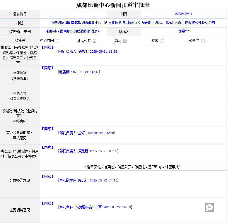九、本投标邀请在中国地质调查局网站、中国政府采购网、中国地质调查局成都地质调查中心网站上以公告形式发布。