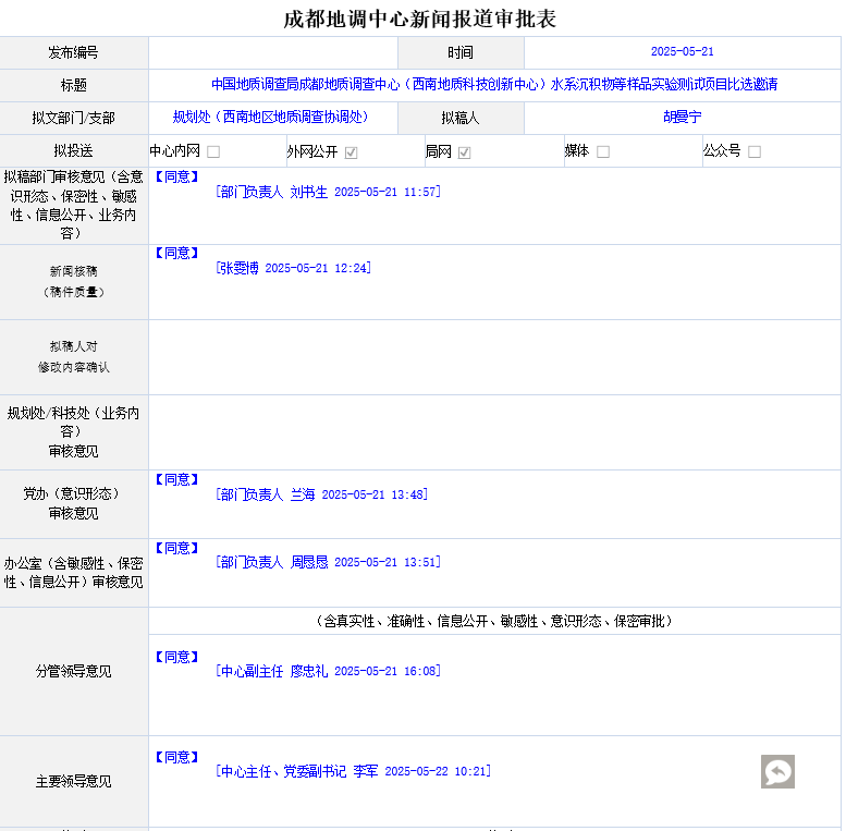 六、发布公告媒介:比选公告在中国招标投标公共服务平台、中国地质调查局网站、中国地质调查局成都地质调查中心网站上发布。
