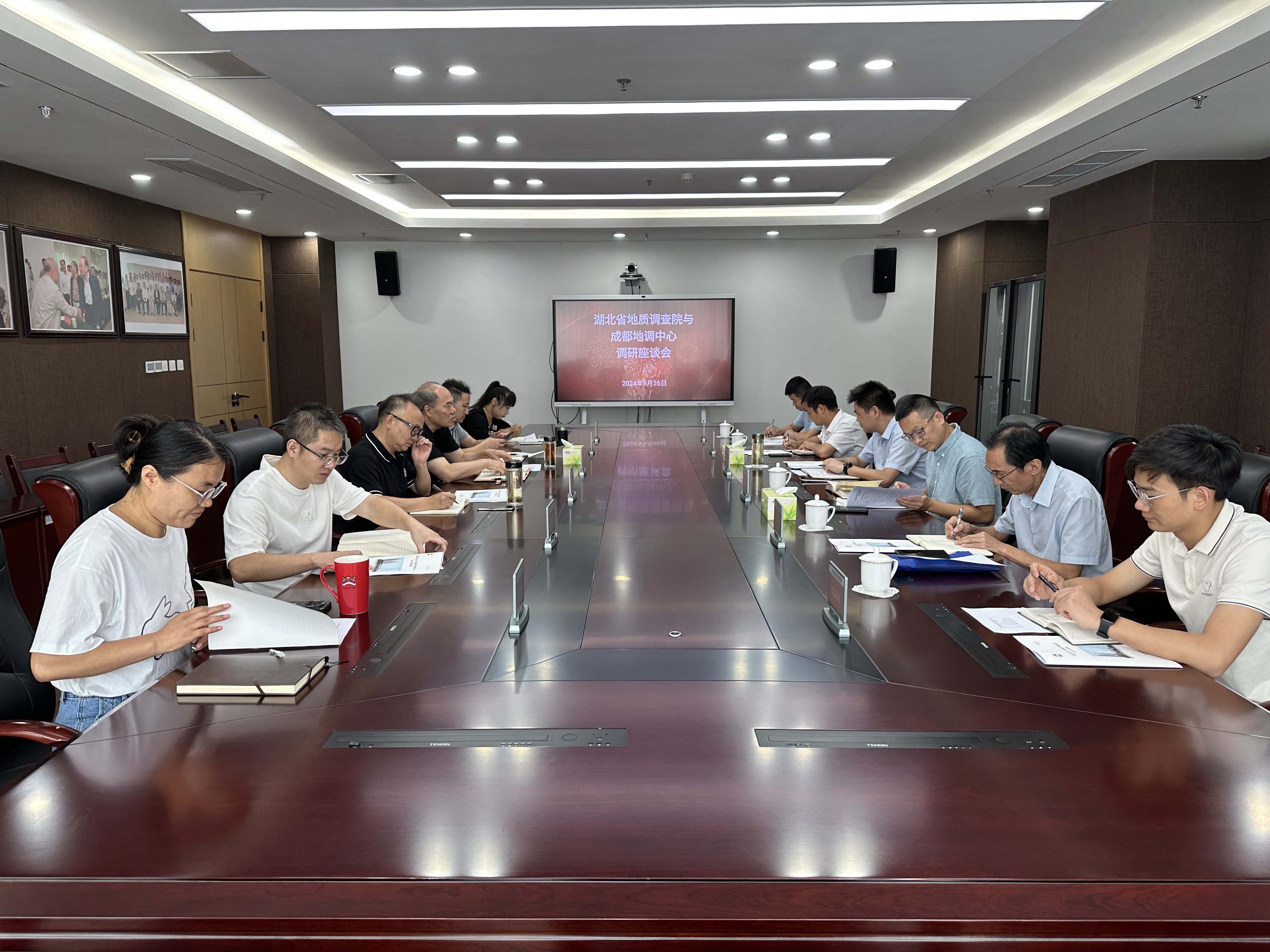 2024年9月26日,湖北省地质调查院党委委员、副院长周豹一行六人莅临中国地质调查局成都地质调查中心调研,成都地调中心党委委员、副主任牟传龙主持了调研座谈会。