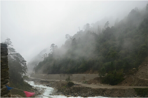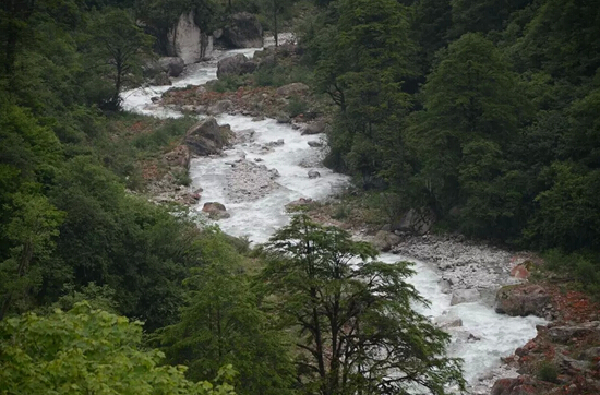 记录本上的素描图尚未画完,雾气就已迫不及待沿着河谷迅速袭来。我视线所及的空间范围内,立刻被笼罩在浓雾里,天色瞬间暗淡,就连溪水里折射出的浅蓝色已都不见。这是贡嘎山下一如既往的迅速,如同午后的急雨和山野的杜鹃花一般,在猝不及防间就匆匆而过。