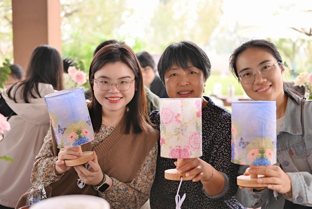 本次活动形式新颖、内容丰富,邀请了从事手工艺制作行业多年的老师带领大家制作蝶骨巴特台灯,大家发挥个人巧思和想象力,结合自己的喜好,剪裁图形并拼贴、装饰于台灯上,赋予一盏盏台灯全新雅致的艺术质感。活动现场欢声笑语,大家尽情享受着手工制作的乐趣。美丽的风景与大家脸上洋溢的灿烂笑容相映成趣。广大干部职工纷纷表示,本次活动让大家走出了办公室,释放了压力,放松了心情。