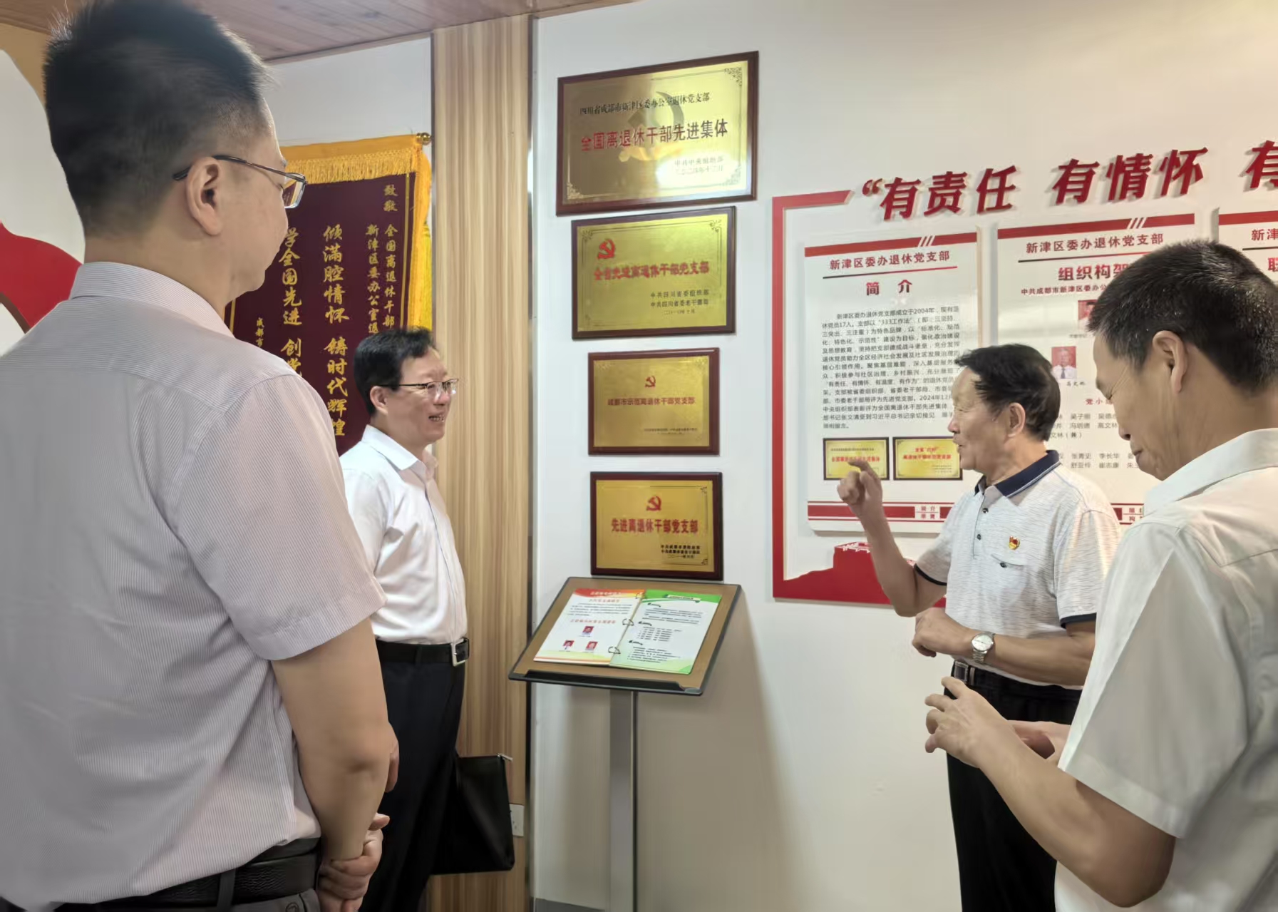 为进一步提升离退休党员服务管理水平,学习典型先进经验,充分发挥榜样的示范引领作用,6月5日,由中国地质调查局成都地质调查中心(西南地质科技创新中心)离退休干部工作分管领导率队,前往荣获2024年“全国离退休干部先进集体”称号的新津区委办公室退休党支部开展学习调研。