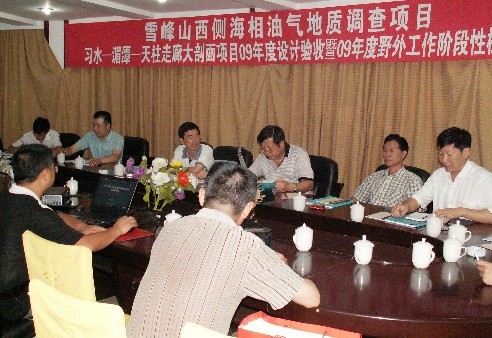 野外工作组成立了以王剑研究员为组长的设计评审专家组和野外工作质量检查专家组,现场分别对湖南地调院承担的“慈利走廊大剖面油气地质调查”(14-01-03)、安徽勘查技术院承担的“道真走廊大剖面物探测量”(14-01-05)、贵州地调院承担的“习水走廊大剖面油气地质调查”(14-01-02)、湖北地调院承担的“利川走廊大剖面油气地质调查”(14-01-04)等4个课题2009年度工作方案和野外工作资料质量进行了评审、检查,对宜昌地调中心承担的“黔江大剖面油气地质调查及地层研究”项目(14-02)2009年度野外工作资料质量进行了检查。期间,野外工作组现场检查了各课题(项目)测制的20多条主要油气地层剖面,对重要地质界面、典型古油藏和油气显示点、关键油气地质问题开展了野外考察、讨论、交流。
