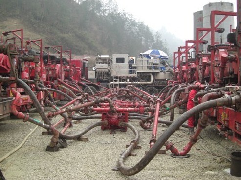 随后,丁俊主任一行和与会领导一起参观了压裂现场,并就一些技术问题与现场施工人员进行了讨论。