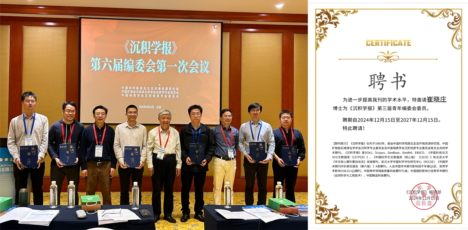 2025年4月23日—4月25日,第八届全国沉积学大会在北京召开。中心沉积地质研究室、基础地质室、能源地质研究室和自然资源部沉积盆地与油气资源重点实验室组织人员代表参加了此次会议,汪正江研究员、崔晓庄研究员、马志鑫正高级工程师、曾胜强副研究员、葛祥英高级工程师、昝博文助理研究员分别做了相关主题汇报,介绍了我中心近年来在华南沉积大地构造背景及四川盆地和羌塘盆地油气及沉积型矿产等方面取得的最新成果和认识。崔晓庄研究员在此次会议上被聘为“沉积学报”第三届青年编委会委员。