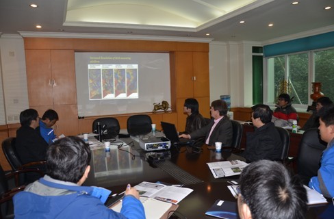 刘国庆总经理首先介绍了恒达新创所代理的仪器设备及软件等主要产品。Johannes B.Stoll博士介绍所在MGT公司的背景及无人机设备研发现状,无人机及搭载物探仪器产品种类及其技术参数、适应环境等,并介绍了无人机物探项目的相关成功案例。最后Johannes B.Stoll博士还就无人机系统应用于甚低频扫面勘查的设想和技术关键问题与物探技术人员进行了广泛深入的交流与探讨。