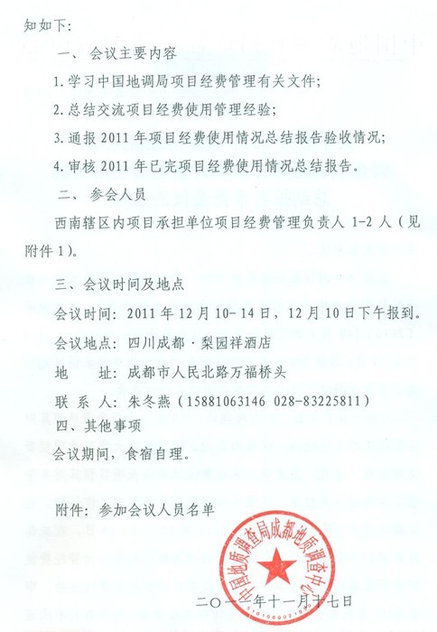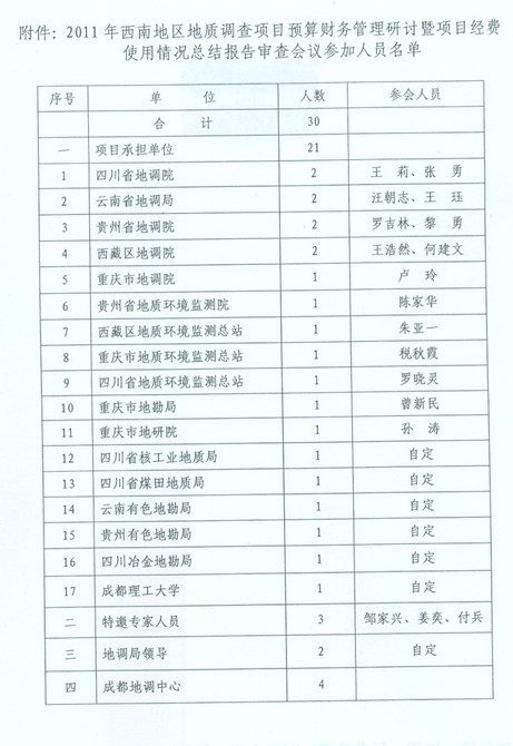 关于召开西南地区2011年地质调查项目经费年报汇审...