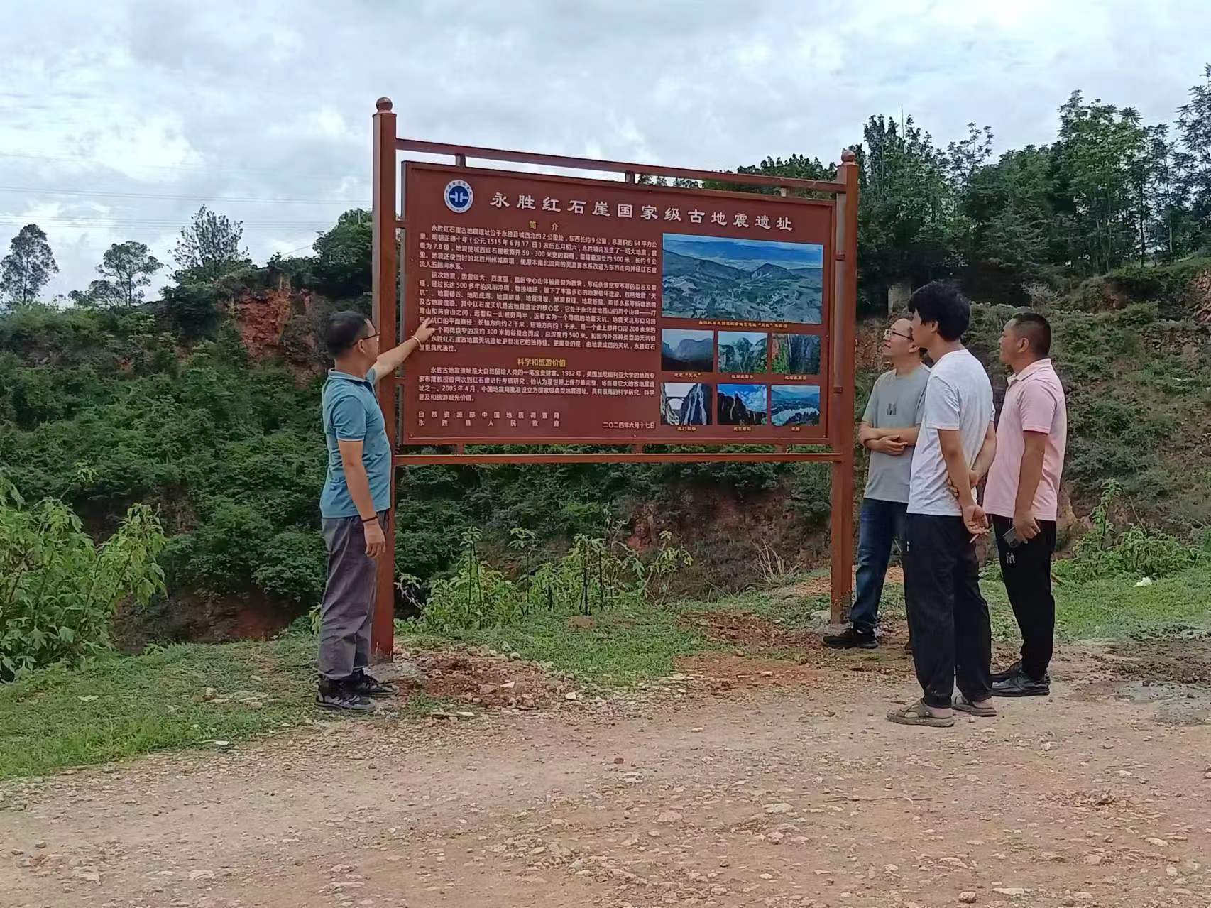 成都地调中心永胜县土地质量地球化学调查项目组和西南地区区域地球化学调查项目组利用野外工作时间,与永胜县委、永胜县地震局、三川镇人民政府进行了充分对接,明确了加强该地震遗址宣传的工作任务。经多次野外踏勘,与永胜县地震局共同制作了该遗址的科普宣传栏,并安装于遗址区内的353国道旁,供过往游客和当地居民学习参观,实现了科学知识常态化普及。该项工作填补了红石崖古地震遗址户外宣传的空白,增添了三川田园风光旅游的科学性和趣味性,为永胜县乡村振兴贡献了地质力量。